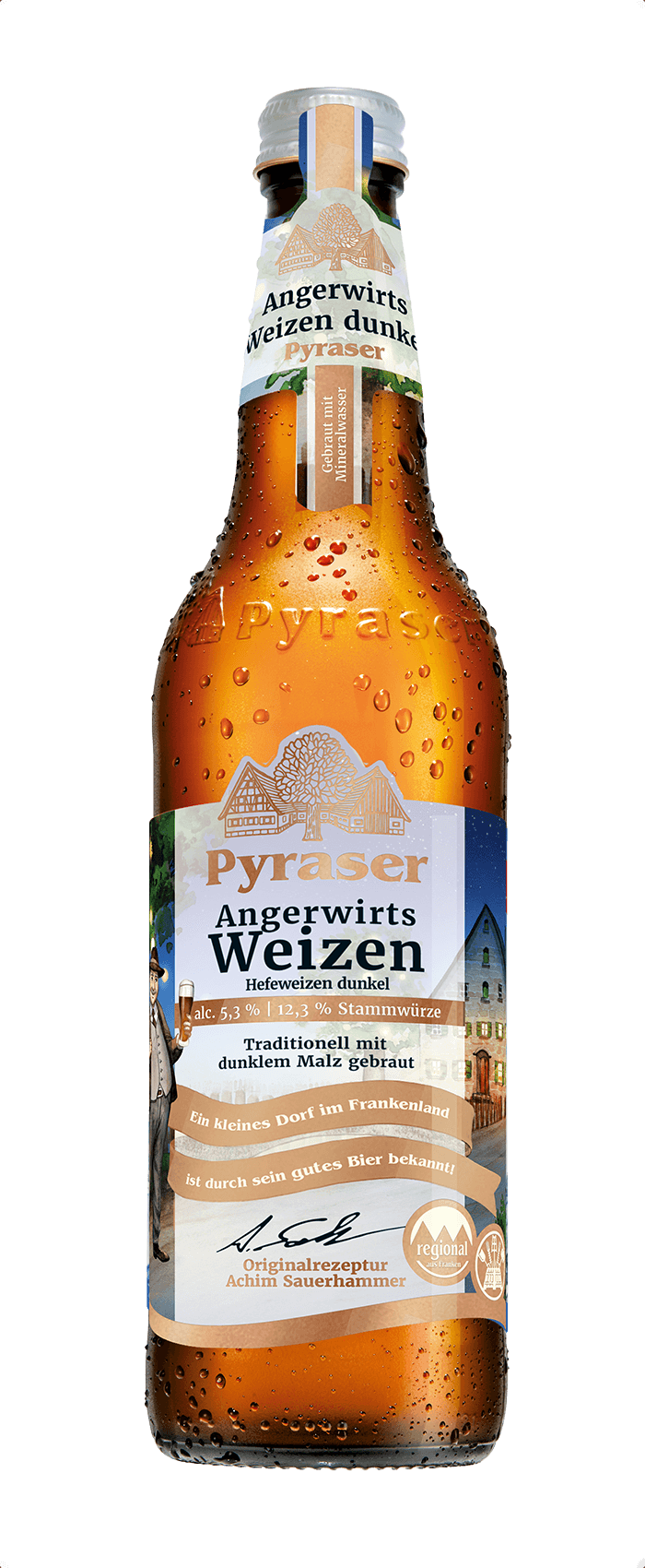 Dieses Bier ist etwas ganz Besonderes, denn zur Herstellung verwendet die Pyraser Landbrauerei 60% seltenes dunkles Weizenmalz, das dem Hefeweizen seine einmalig schöne kastanienbraune Farbe verleiht.