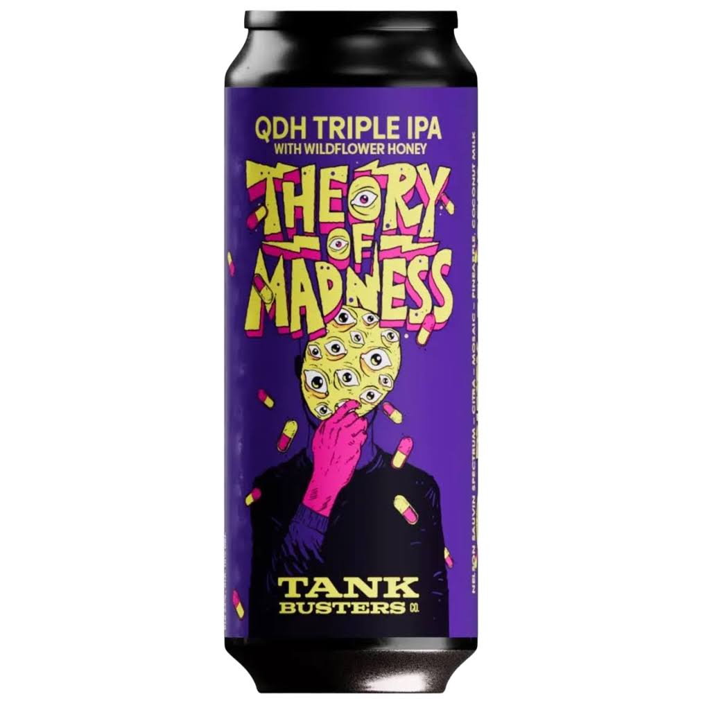Das TankBusters Theory Of Madness QDH Triple IPA ist ein extrem intensives und exotisches Craft Beer der polnischen TankBusters Brewery.Geschmacklich ein perfektes Gleichgewicht zwischen der intensiven Süße der Früchte/Zutaten und der kräftigen, aber gut eingebundenen Hopfenbitterkeit, was es trotz seiner Intensität überraschend süffig macht.
